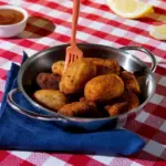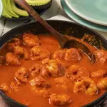Camarones salteados en salsa picante de tomate y vino blanco.
