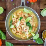 Langostinos, mejillones, almejas, camarones, calamares en salsa de vino blanco, leche de coco y azafrán.