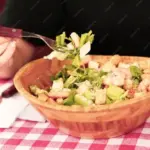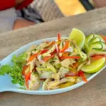 Una melodía de mariscos y verduras. Pulpo, calamar, mahi-mahi, camarones y vegetales mixtos a la vinagreta.