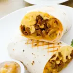 2 huevos, tocino, pico de gallo y queso cheddar.