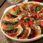 Berenjenas, salsa de tomate, queso mozzarella al horno.