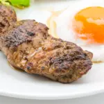 3 Huevos de cualquier stilo, 5 oz de filete de carne servido con papas salteadas.