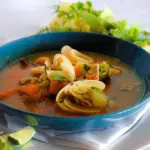 Camarones, langostinos, mejillones, almejas, calamares, pulpo y verduras mixtas.