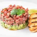 Filete de atun cubierto con sesame con una reduccion de balsamico.
